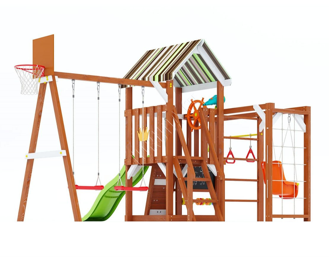 Площадка Борге 12 обладает довольно широким функционалом (который по желанию можно легко расширить). Детская площадка предназначена для дачи, коттеджа.