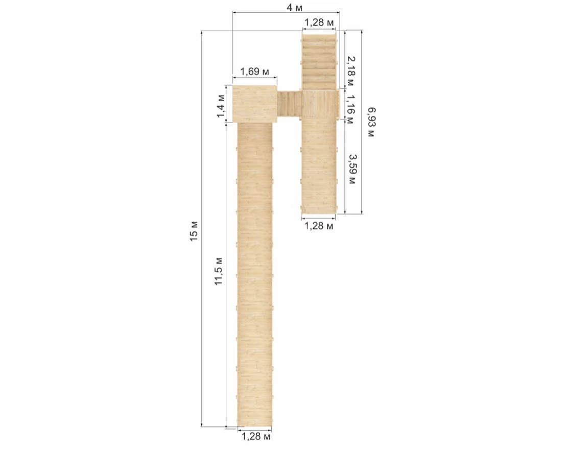 - Модуль безопасен для частного пользования, ведь конструкция оборудована бортиками, безопасными лестницами с перилами, усиленными балками. Имеется деревянная крыша.