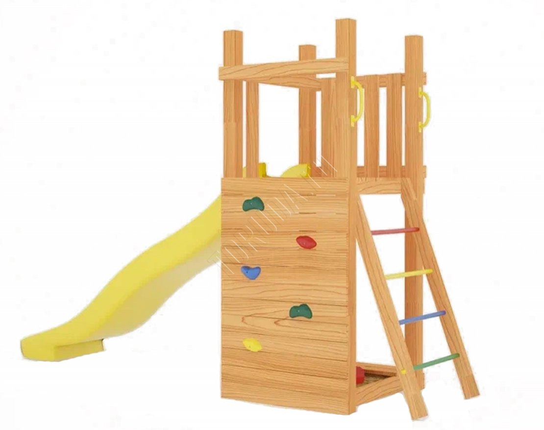 Спортивные снаряды и дополнительные игровые аксессуары изготовлены из прочного разноцветного пластика в Бельгии. Сооружение не займёт много места на дачном участке и не потребует ухода в холодное время года, поскольку оно всепогодное. Выбор лакокрасочного покрытия и цвета деревянных балок и опор за Вами – они поставляются непокрытыми. Главное – чтобы в составе присутствовал антисептик, так строение прослужит долго и будет выглядеть свежо.