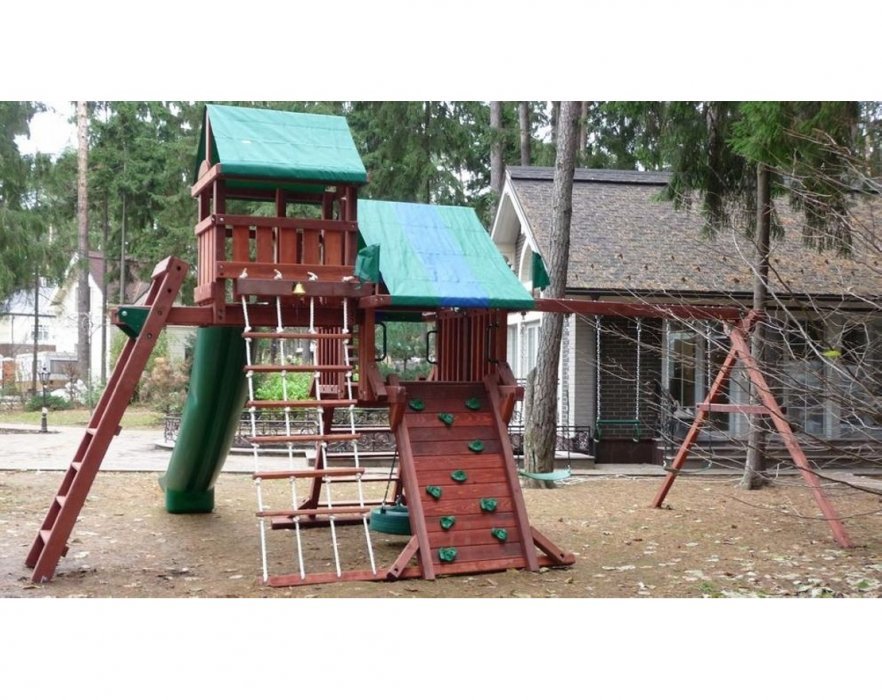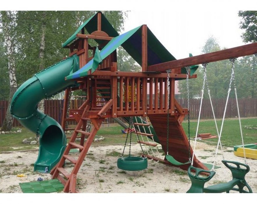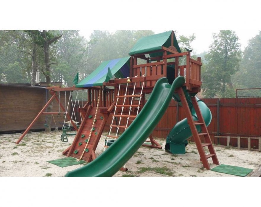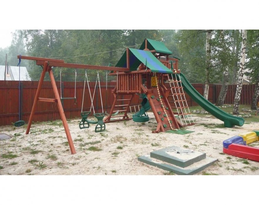 Площадка Гигант 3 идеально подходит для отдыха как одного ребенка, так и целой компании малышей. Рекомендуемый возраст от 3 до 11 лет. Площадка изготовлена из красного дерева (секвойя и кедр) и пропитана защитным составом.