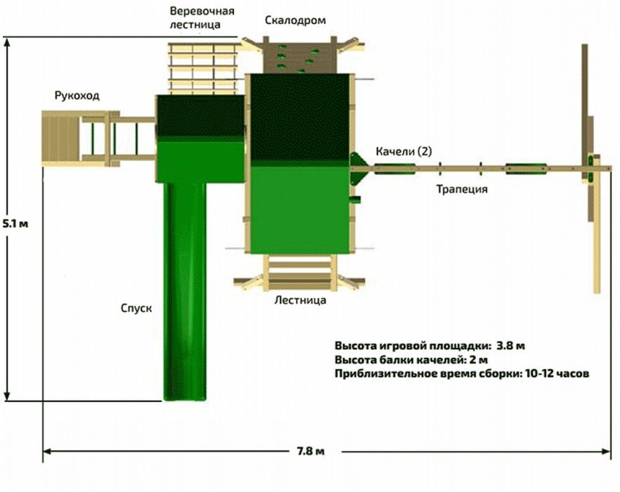 Для удобства и безопасности детей устанавливайте площадку на ровную поверхность, чтобы с каждой стороны было по 1,8 метра свободного пространства.