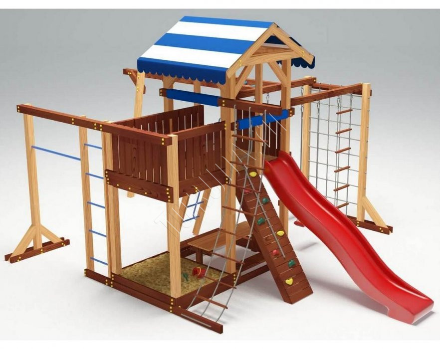 Площадка Парус 7 обладает довольно широким функционалом (который по желанию можно легко расширить). Детская площадка предназначена для дачи, коттеджа.