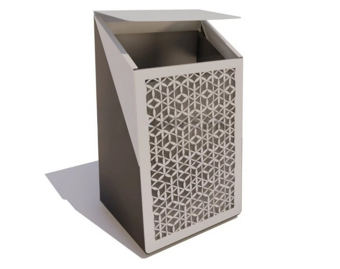 Создавать комфорт на улицах, в парках и других общественных местах помогают практичные урны, которые, к тому же, замечательно вписываются в городской ландшафт. Уличная урна «Концепт Уно» выделяется необычным дизайном. Фронтальная часть стального корпуса декорирована ажурным орнаментом в виде геометрических мотивов. Такое дизайнерское решение визуально облегчает конструкцию. Другая изюминка модели — контрастное сочетание цветов. Фронтальная часть изделия, его крышка, расположенная под углом, и треугольные фрагменты по бокам отличаются по цвету от остальных частей. Купить урны «Концепт Уно» можно в двух цветовых вариантах.