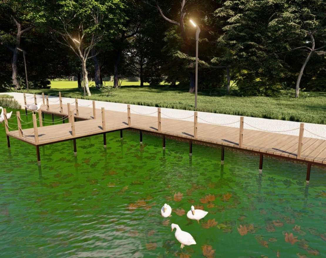 Пирс будет укреплен сваями, что обеспечит его стабильность и прочность.